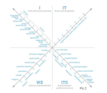 To understand better how the pair mind-body operates, after reconsidering the term holon let's look at the illustrations below. You can see an idea of the individual holon in the current version of AQAL on the picture 4.