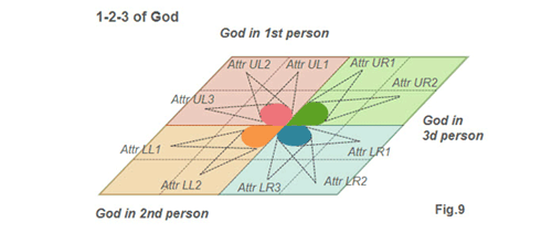 As for attractors' power of attraction in UL quadrant that ensures the higher states of consciousness and insights, emerging of "divine proud" and happiness, with the help of which we can develop higher stages, it corresponds to "God in 1 person". Samscaras (inexplicable attractors-impulses) are often happened to be such attractors of consciousness, products of evolutionary inertness that can be observed in meditation. Passionarity pushes can be treated like this too.