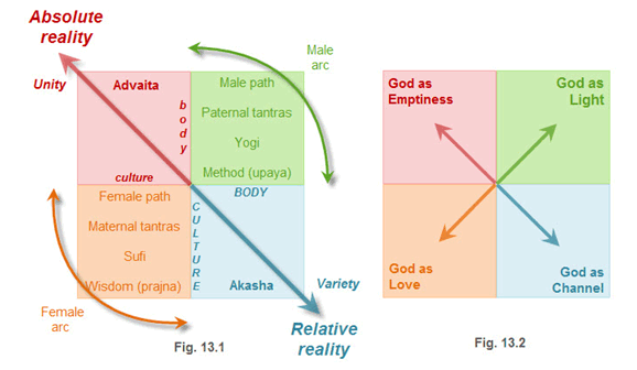 Indeed, if cognition of the true nature of mind was the ultimate goal, why Tibetan traditions followers would practiced the Six Yogas of Naropa (working with energy). And why the enlightened Masters of advaita are not able to realize the rainbow body? In my view, the point is that we can observe not one or even two phenomena of enlightenment (horizontal or vertical ones). We encounter several types of realization observed in different quadrants!